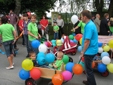 in bunt geschmückten Bollerwagen, über die Mädchen mit